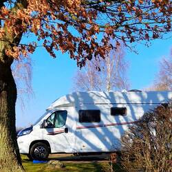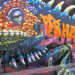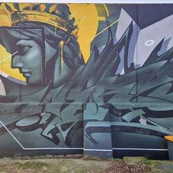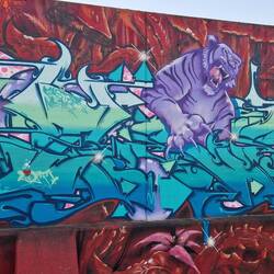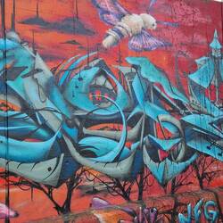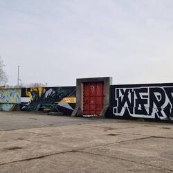 Der Stellplatz befindet sich hinter Flutschutzmauern, die mit tollen Graffitis verziert sind!