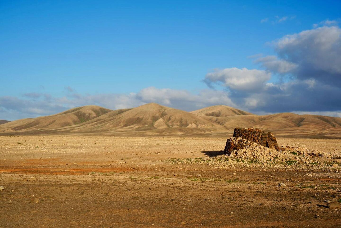 Früher war Fuerteventura die Kornkammer der Kanaren, heute Erinnern nach Abholzung der Wälder, absenken des Grundwasserspiegels und Verlust der traditionellen Landwirtschaft durch Monokultur undLæs mere