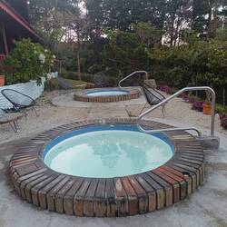 Der erste Stopp in Costa Rica fühlt sich fast wie Luxusurlaub an, nirgends Müll, überall hochwertige Ausstattung (heiße Duschen!) und zum Tagesabschluss im heißen Whirlpool entspannen.Lue lisää