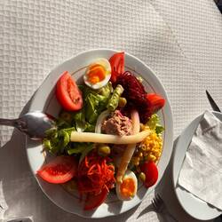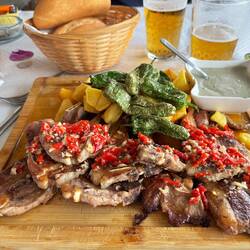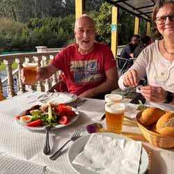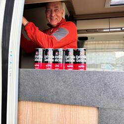 Wir decken uns mit Grundnahrungsmitteln ein 🍺🍺🍺🍺, 🍅🍤🥖 usw und genießen die heutige Sonne.