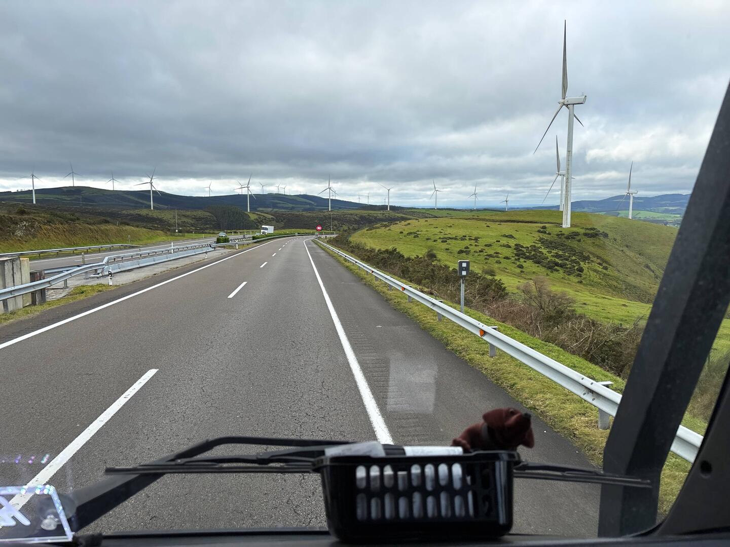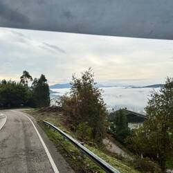 Wir fahren über Land was nach Nebel wirklich sehr schön ist. Landschaftlich deutlich netter als die südliche Tour. Nur leider bekommen wir keine Kilometer zusammen, daher wieder Wechsel auf den Highway. Auch schön muss man wirklich sagen. Über Wiesen, Gebirge und Vulkane geht es weiter Richtung Spanien. Wir suchen uns ein Plätzchen Nähe der Autobahn, damit wir morgen endlich spanischen Boden erreichen.
