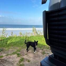 Wir stehen schön direkt am Wasser können toll am Strand strandeln, sehen Surfer oder auch die, die es noch werden wollen.