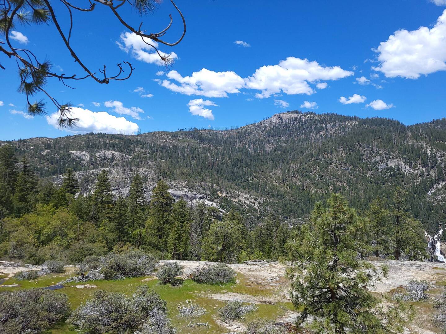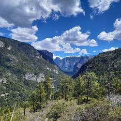 In Oakhurst besuchen wir den örtlichen Starbucks und machen uns frohen Mutes weiter auf in Richtung National Park. Schon bald erreichen wir den Sierra National Forest, den man durchqueren muss und der bereits einige spektakuläre Blicke gewährt.