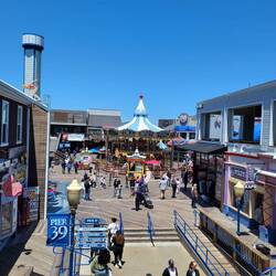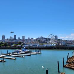 Hier werden wir im Eagle Cafe fündig und verspeisen einen Burger und ein Sandwich 🍔 🥪 Anschließend spazieren wir über den Pier und genießen die Aussicht über die San Francisco Bay und die dort ansäßigen Seelöwen.