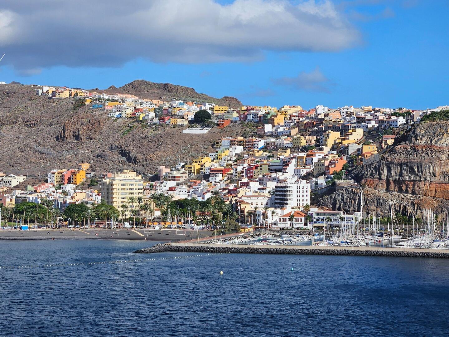 Aussichtspunkt oberhalb von San Sebastian. Panoramafahrt nach Norden nach El Rejas weiter durch NP Garajonay nach Roque de Adando und Degollada de Peraza