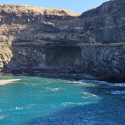 Panoramafahrt zum Fischerdorf Ajuy und Besichtigung der Seehöhlen aus den 15.Jahrhundert.Danach durch den Naturpark nach Betancuria mit den weißenLäs mer