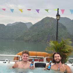To say we felt a little bit out of place, cause we expected a small, wooden boat and a to go food pack like noodles or rice we quickly went along with it.