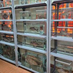 Dort war eine große Sammlung der auf der Insel lebenden Tiere ausgestellt, die in mit Wasser gefüllten Gläsern aufbewahrt wurden.