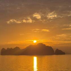 Anschließend ging es zurück zum großen Boot, wo wir den faszinierenden Anblick der vielen kleinen Inseln genossen, die wie die Finger einer greifenden Hand aus dem Wasser ragten.