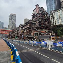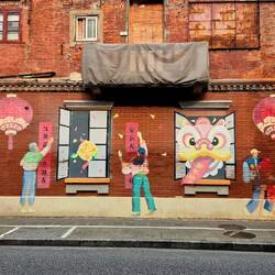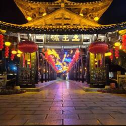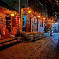 Trough small streets with nice decoration to seeking shelter from the rain in an Arcade building.