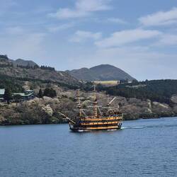 With the rope car we arrived at the Ashi lake and took an actual pirate ship crouse across the whole lake.