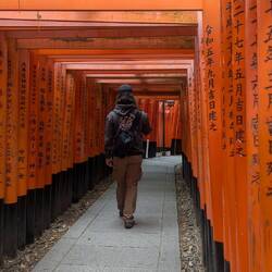 Der Wecker weckte uns um 4 Uhr morgens, und wir machten uns auf den Weg zum Fushini Inari-Taisha, dem berühmten Tempelkomplex mit seinen tausend Torii-Tori.