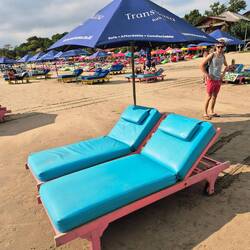 We arrived savely at the beach, rented two chairs for the day for about ~5€ with no problem leaving them for lunch and coming back afterwards.
