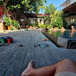 Its like designed for young Backpackers, you get the bare minimum on sleeping space but get to experience good cheap food, chill out zones, beer, pool tables🎱, a swimming pool, sunchairs right infront of the ocean, scooter renting infront of the door and lots of other Backpackers🎒 that are like the stray dogs in this area that gather at one place.