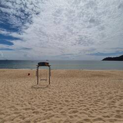 Wir kamen sicher am Strand an, mieteten zwei Stühle für den Tag für ca. 5 €, ohne Probleme, sie zum Mittagessen zu verlassen und danach wiederzukommen.