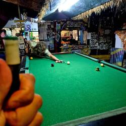 Es ist wie für junge Backpacker konzipiert, man erhaltet das absolute Minimum an Schlafplatz, gutes billiges Essen, Chill-out-Zonen, Bier, Billardtische, ein Schwimmbad, Sonnenstühle direkt vor dem Meer, Motorroller, die vor der Tür vermietet werden, und viele andere Backpacker, die wie die streunenden Hunde in dieser Gegend sich an diesem Ort versammeln.