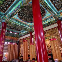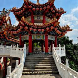 Wir gingen zum buddhistischen Thean Hou Tempel, einem klassischen chinesischen Gebäude auf einem schönen Platz auf einem Hügel.