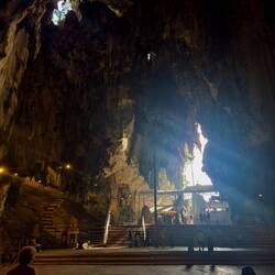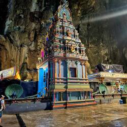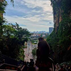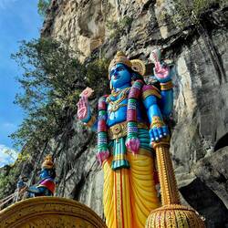 Danach gingen wir zu den berühmten Batu-Höhlen, einem Hindu-Tempel, der vor allem für die atemberaubenden 43 m hohen goldenen Statue von Lord Murugan und die farbenfrohe 272-stufige Treppe bekannt ist.