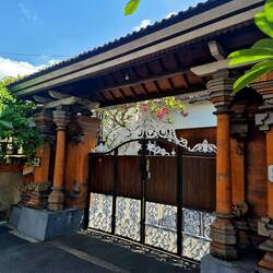 Der Tag begann nach einer erholsamen Nacht mit einem tollen Frühstück in einem nahegelegenen Restaurant. Das Essen war fantastisch. Ich hatte einen Obstsalat mit Toast und zerdrückten Avocados und Kaffee und Orangensaft für etwa 5 €. Es erstaunt mich immer noch, wie gut das Essen hier schmeckt und wie günstig die Preise sind. Danach schickte ich uns auf eine Mission zum Werdhi-Budaya-Tempel/zur Kunstgalerie. Wir brauchten ungefähr 1,5 Stunden.