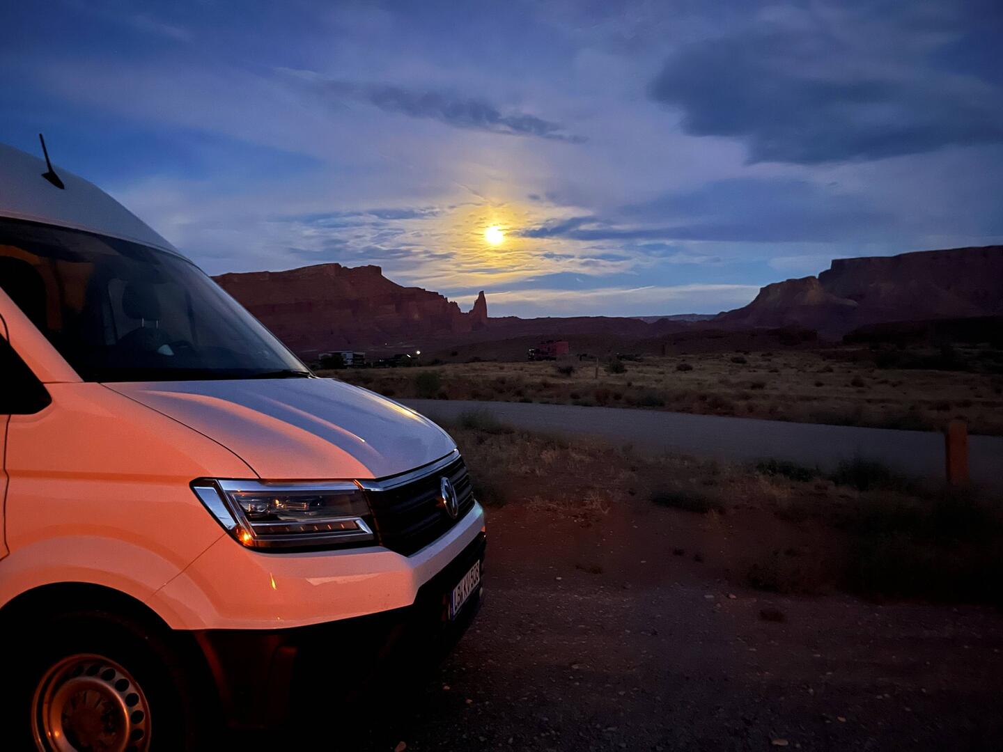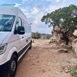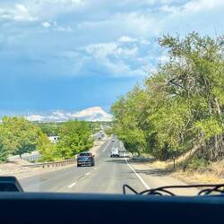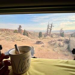 Am nächsten Morgen sind wir früh wach. Ob’s an der Höhe liegt oder daran, dass wir im Hinterkopf hatten, dass wieder jemand an die Tür klopfen könnte („No Camping“ und so 😉) – keine Ahnung. Vielleicht einfach eine Mischung. Ein Kaffee, ein Blick auf die Wetter-Apps – und die Entscheidung steht: Wir lassen Colorado hinter uns und fahren Richtung Utah, Moab.