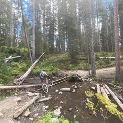Bevor es weitergeht, noch eine kleine Übungseinheit am See – und dann ab nach Keystone. Schon verrückt: Genau hier waren wir im Winter! Jetzt ist die Stadt fast leer, der Bikepark offiziell zu, aber wir dürfen die Trails fahren, solange wir selbst hochtreten. Mit den E-Bikes kein Problem. 🚵‍♂️💨