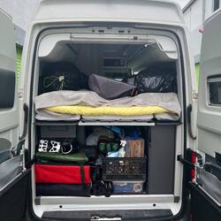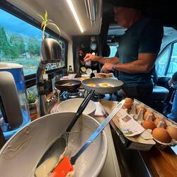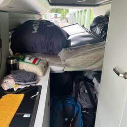 Der nächste Morgen dann zurück ins Chaos. Erst Kaffee für die Nerven ☕, dann wieder ran: sortieren, falten, verstauen, stapeln. Und irgendwann – nach viel Hin und Her – ist es tatsächlich geschafft: alles hat seinen Platz. 🎉 Unglaublich, aber wahr – wir sind (wieder) Herr des Camperchaos.
