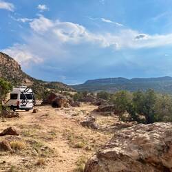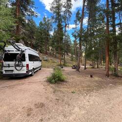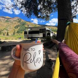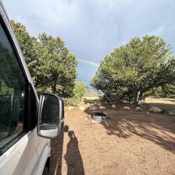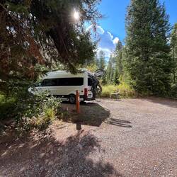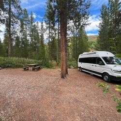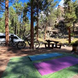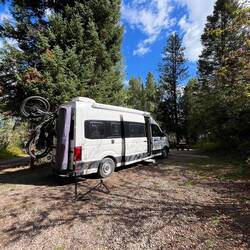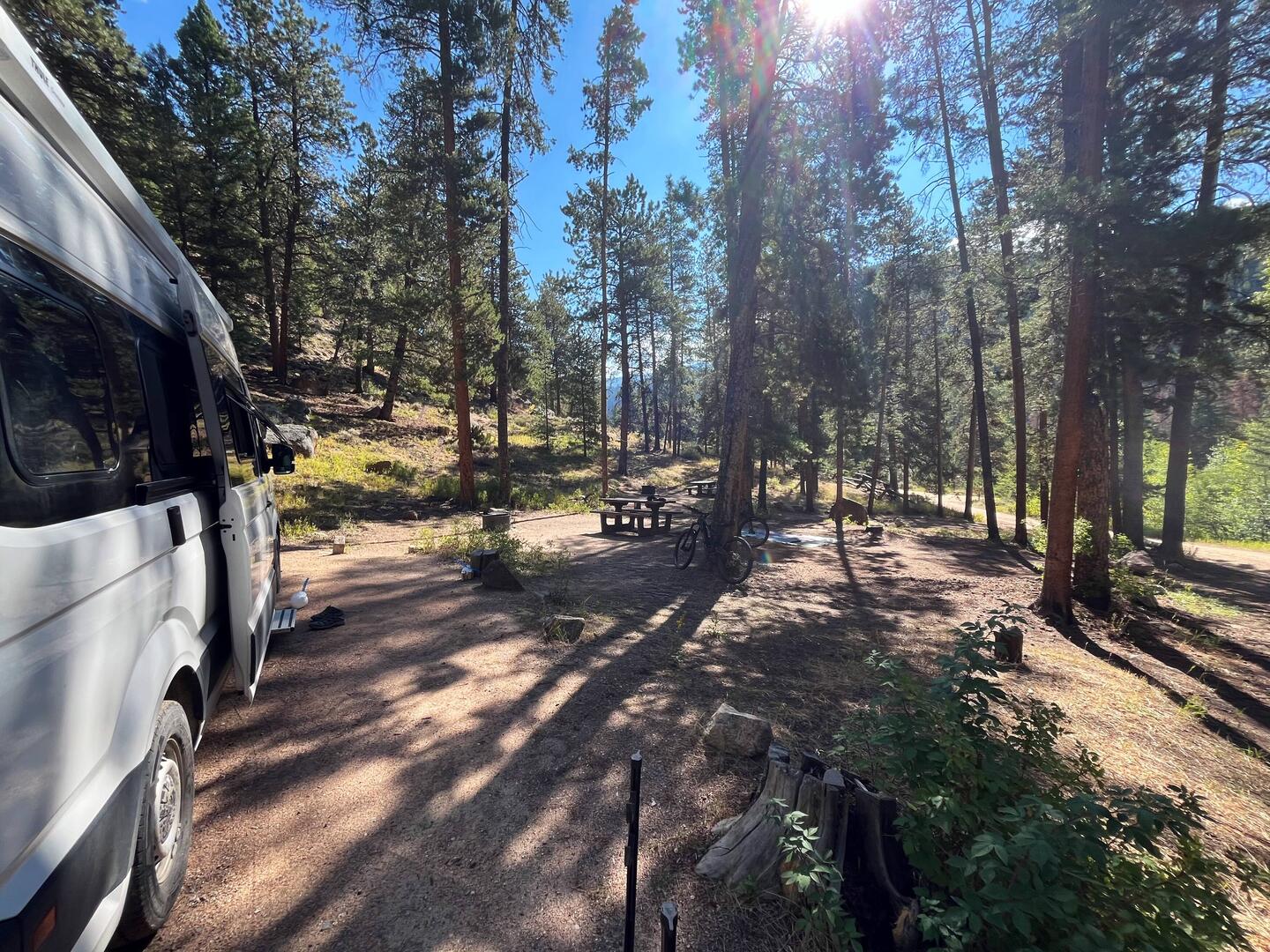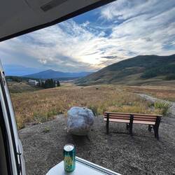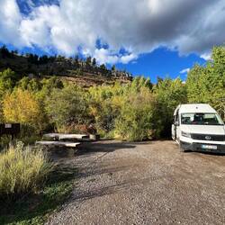 Unser Stellplatz liegt idyllisch am Trail, mitten im Grünen. Rehe spazieren regelmäßig vorbei, als wären sie hier die wahren Platzherren. 🦌 Abends wird’s frisch, Colorado zeigt langsam den Herbst und die Temperaturen fallen. 🍂