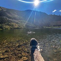 Dazu Stellplätze wie im Bilderbuch: Sonnenuntergänge, Bergseen zum Baden, Rehe direkt neben dem Camper (viel weniger scheu als in Deutschland) und unsere ständigen Nachbarn, die Streifenhörnchen. 🐿️🔥🚫 Leider: wegen der hohen Waldbrandgefahr keine Feuerstellen beim Campen.