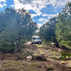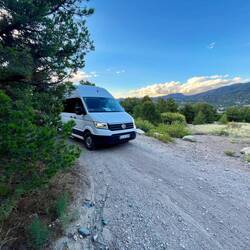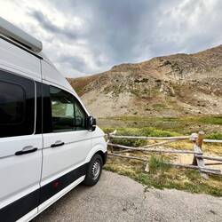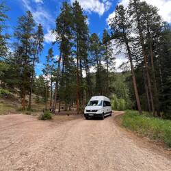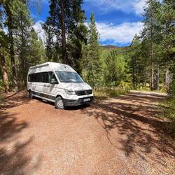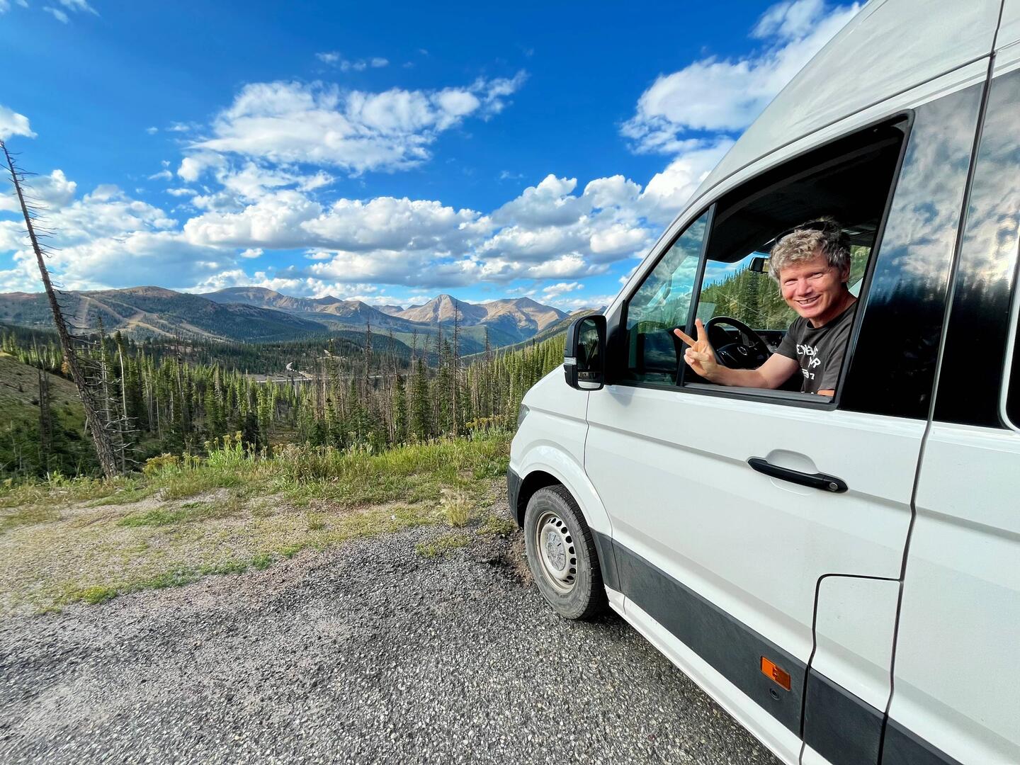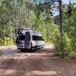 Wir warten noch etwas, checken die Apps, aber schnell wird klar: Das war’s für heute. Also Plan B – Schlafplatzsuche. Nicht so easy rund um Keystone, also hoch auf den Pass. Dort finden wir einen Parkplatz, zwar mit „No Camping“-Schild, aber hey – wir sind nicht allein, ein paar andere Vans stehen auch schon da.