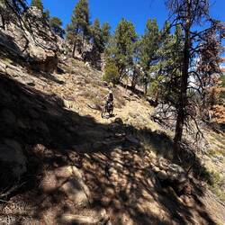 Zum krönenden Abschluss probieren wir noch einen weiteren Trail in der Nähe – aber auch hier zwingt uns die Mittagshitze schnell zum Umkehren. Viele schwarze Trails hier sind eben nicht nur „hochfahren & runterballern“, sondern richtige Schiebe- und Tragestrecken. Da sind selbst mit E-Bikes die Grenzen schnell erreicht. Und ich frag mich ständig: Wie machen das die ganzen Bio-Biker hier?! Respekt. 🙌