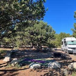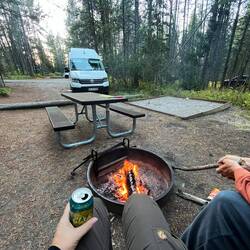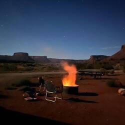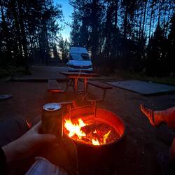 Übernachtet haben wir diesmal direkt am Canyon Campground. Ein größerer Campingplatz, kurz vor Saisonende – aber perfekt für uns. Abends kaufen wir noch schnell Holz im Store, machen Lagerfeuer, kochen draußen und sitzen unterm Sternenhimmel. Mit der Wärme vom Feuer und die Dunkelheit drumherum einfach herrlich. 🔥 🪵 🌟 💫 🌳