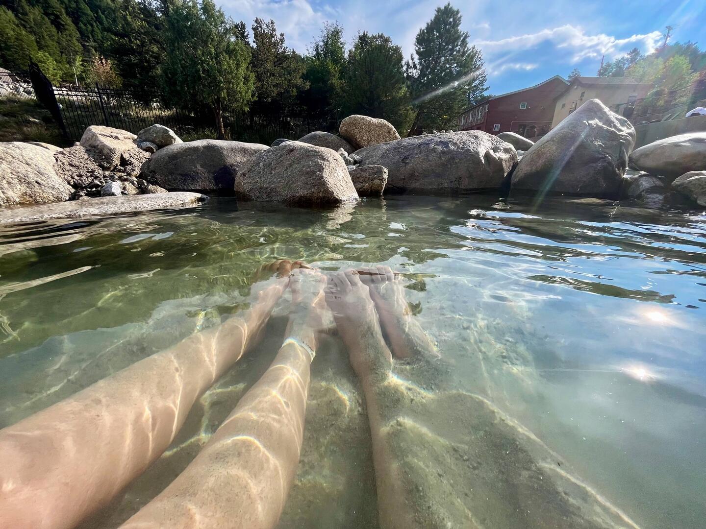 Auf dem Weg nach Breckenridge legen wir noch einen Stopp bei den Mount Princeton Hot Springs in Buena Vista ein. Heiße Quellen direkt am Bach – das Wasser ist tatsächlich warm, weil der Boden so heiß ist. Ab und zu mischt sich kaltes Wasser dazu, was die perfekte Abwechslung macht. Ein herrliches Thermalbad, Natur-Style. ♨️💦