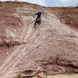 Am nächsten Tag geht es auf den berühmten Slickrock Trail – ehrlich gesagt ohne wirkliche Vorstellung, was uns erwartet. Ein ganzer Trail komplett über Felsen, die Richtung zeigen weiße Striche am Boden. Klingt simpel, ist es aber nicht. Steile Rampen hoch, runter, wieder hoch – mein persönlicher Endgegner. 😅 Aber auch eine der beeindruckendsten Erfahrungen, die ich je auf dem Bike hatte. Am Ende total kaputt, aber auch total geflasht.