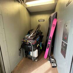 Für die Nacht finden wir einen Stellplatz direkt am Uni-Gelände – erstaunlich ruhig und perfekt für eine entspannte Nacht. Am nächsten Morgen geht’s dann direkt zum Storage. Tür auf… und sofort klar: Das wird eng. Also Plan B – alles rein, egal wie, später sortieren. Nach einer halben Stunde ist Hugo vollgestopft bis unters Dach: Bett blockiert von Skitasche, Bad voller Ski, der Rest in jede noch so kleine Ecke gestopft. 🚪😂