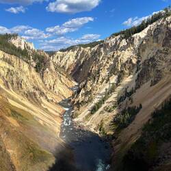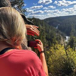 Danach geht es weiter Richtung Grand Canyon of Yellowstone. Frühstück gibt es heute am See, kurzer Stopp an der Fisher Bridge – und dann diese unglaublichen Farben und Wasserfälle im Canyon. Ich glaub, Bilder und Videos sagen mehr als 1000 Worte – einfach wow. 😍
