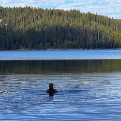 Am nächsten Morgen springe ich erstmal kurz in den See. 🥶 Eisbad deluxe, kalt wie die Hölle, aber nach 30 Sekunden gewöhnt sich der Körper und danach fühlt es sich einfach unbeschreiblich gut an. Frisch und lebendig!