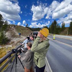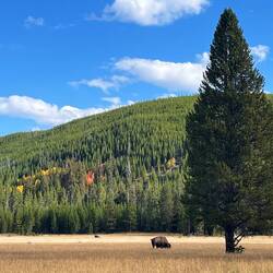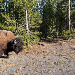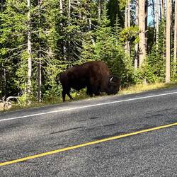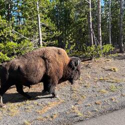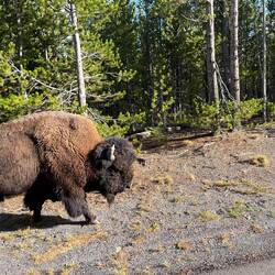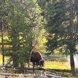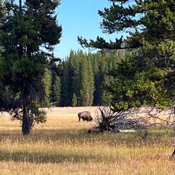 Schon am Tag zuvor zwei Bison, einer stand wie im Bilderbuch vor einer Traumkulisse – das Foto des Tages. 📸 Dann an der Fisher Bridge: Menschenmassen – und ja, da muss was sein. Und tatsächlich: Zwei Grizzlys, aus sicherer Entfernung. Zum Glück standen wir neben ein paar top ausgestatteten Fotografen, die uns durchs Fernglas schauen ließen. Ein Moment, den wir nie vergessen werden.