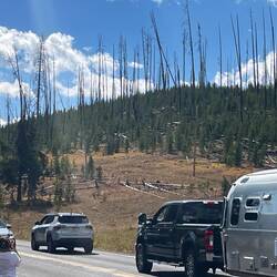 Nach den intensiven Tagen in Yellowstone rollen wir am Nachmittag direkt weiter – der Kopf noch voll mit Eindrücken, die Speicherkarte voll mit Fotos. Viel passiert an diesem ersten „Reisetag“ nicht mehr: ein paar Stunden fahren, kurzer Stopp für das Abendessen und dann ein Stellplatz nahe der Autobahn. Praktisch, aber nicht gerade idyllisch – einfach nur schlafen und weiter. 💫
