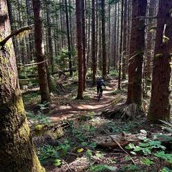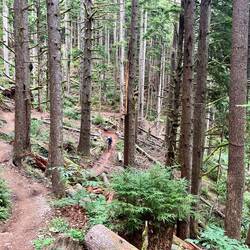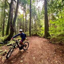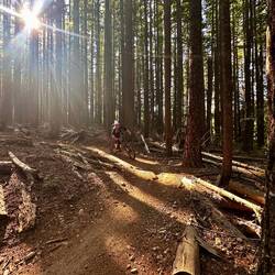 Rein in die Klamotten, Helm auf und los. Nach den ersten Metern im Wald bin ich einfach sprachlos: überall sattes Grün, Farn, Bäume, Moos – fast wie im Dschungel. 🌿🌳 Ich kann mich kaum sattsehen. Und dazu diese Trails! Rattlesnake und Tiger Mountain – zwei Berge, perfekt erschlossen mit einer Trailstruktur vom Feinsten. Alles super ausgeschildert, jede Menge Auswahl – man weiß fast nicht, welchen man zuerst fahren soll.