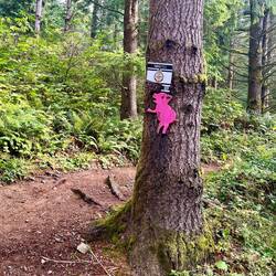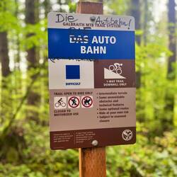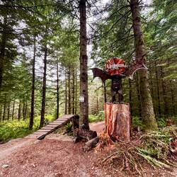 Die Trails hier? Ähnlich wie bei Snoqualmie und Tiger Mountain, aber noch einen Tick kreativer. Neben den üblichen Schildern haben alle Trails kleine Symbole, liebevoll gebastelt aus Holz, Stein oder Metall – jedes ein kleines Kunstwerk. ✨ Die Abfahrten machen Laune: flowig, verspielt, mit genau der richtigen Portion Technik. Nur etwas rutschiger, da es hier anscheinend doch viel geregnet hat. Aber das Gebiete ist perfekt, um unsere US-Bike-Episode gebührend abzuschließen.
