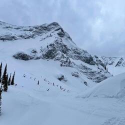 Zum Teil konnten wir einige Runs sehen und irgendwie ist es schon beeindruckend, welches Gelände hier gefahren wird. Eine andere Welt des Freeridens in Kanada. 🏂⛰️