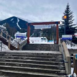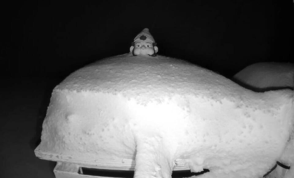 Der Sturm ist tatsächlich gekommen. Und jeder in Revelstoke weiß: Der erste Blick am Morgen geht nicht aus dem Fenster, sondern auf den Zwerg. Dieser kleine Schneemesser-Gnom am Berg zeigt an, wie viel Neuschnee gefallen ist. Wenn der arme Kerl fast im Schnee versinkt, heißt das: Powder Alarm. ❄️⛄