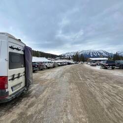 Unsere Nächte haben wir zwischen zwei Stellplätzen gewechselt 🚐🌙. Einer ruhig hinter dem Sportcenter – perfekt. Der andere mit mehreren Campern und Anhängern, die hier vor dem Winter abgestellt wurden. Durch den ganzen verfahrenen Schnee ist das Rangieren ohne gute Reifen und Allrad echt eine Herausforderung. Wir haben mehr als einmal zugeschaut, wie jemand feststeckte – Drama inklusive 😬. Einmal standen wir selbst etwas ungünstig und hatten kurz Angst, dass uns jemand ins Auto fährt. Unterhaltung gratis.
