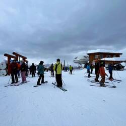 Nach ein paar Läufen am Vormittag hatten wir uns ein gutes Mittagessen verdient 🍽️ und am Nachmittag sind noch einige richtig schöne Runs dazugekommen ❄️🤍. Der letzte Run ins Tal war wie immer sehr voll 😅 – tagsüber verteilt sich alles super, aber am Ende fahren dann doch alle gleichzeitig runter.