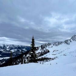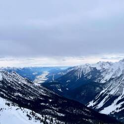 Wir schauen uns das Gebiet an, fahren ein paar Abfahrten und genießen vor allem diese unglaubliche Aussicht auf die Rocky Mountains 🤍🏔️🤍.Read more