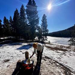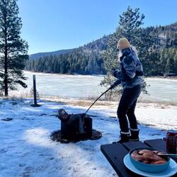 Also Plan B. Wenn kein Ski fahren, dann wenigstens See, Feuer, Grill und Bier. 🔥🍺🌅