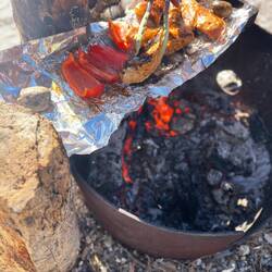 Irgendwann wird der Grill angeschmissen. Ein bisschen Feuer, ein bisschen Essen, ein kaltes Bier dazu. Genau diese einfachen Momente fühlen sich unterwegs oft am besten an.