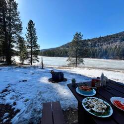 Wir starten den Tag nochmal in unserem Lieblingscafé mit Frühstück ☕🥐, fahren ein letztes Mal zu den heißen Quellen ♨️, besorgen Holz 🪵 und ein paar Sachen für die nächsten Tage.