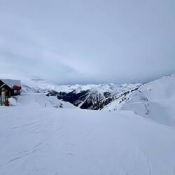 Meine „neuen“ gebrauchten Skischuhe entwickeln heute eine ganz eigene Persönlichkeit und drücken so brutal, dass nach zwei Runs Schluss ist. Alex dreht noch ein paar Runden, während ich unten bei einem Bier sitze und ehrlich gesagt ziemlich frustriert bin – endlich Powder und ich kann ihn vor Schmerzen nicht genießen. Der Winter und ich finden dieses Jahr irgendwie nicht so richtig zusammen. 🤷♀️