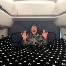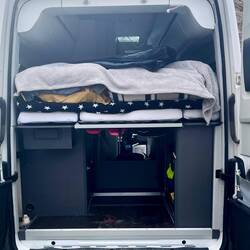 Die Nacht im Camper ist… sagen wir mal: sportlich. Versuch mal mit Hexenschuss ins Bett zu klettern. Oder wieder raus. Oder dich im Mini-Bad halbwegs gerade hinzustellen. 🚐😅